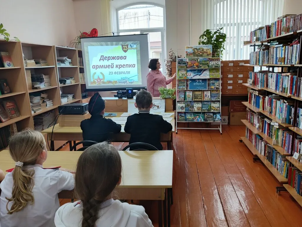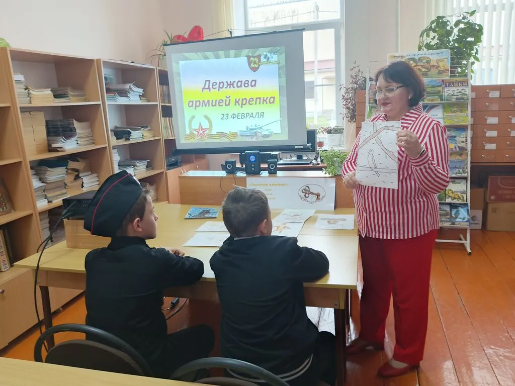 23 февраля – это День воинской славы в Российской Федерации, День защитника Отечества. Заведующая сектором по работе с детьми Н.А. Мотунова представила школьникам презентацию и книжно-журнальную выставку о военной технике, традициях праздника 23 февраля, когда мы чествуем всех тех, кто ежедневно отдаёт долг Родине, кто считает защиту своей страны – делом чести и жизни. Учащиеся 4-А класса МБОУ СОШ №18 приняли активное участие в интерактивной беседе, ответили на вопросы викторины.