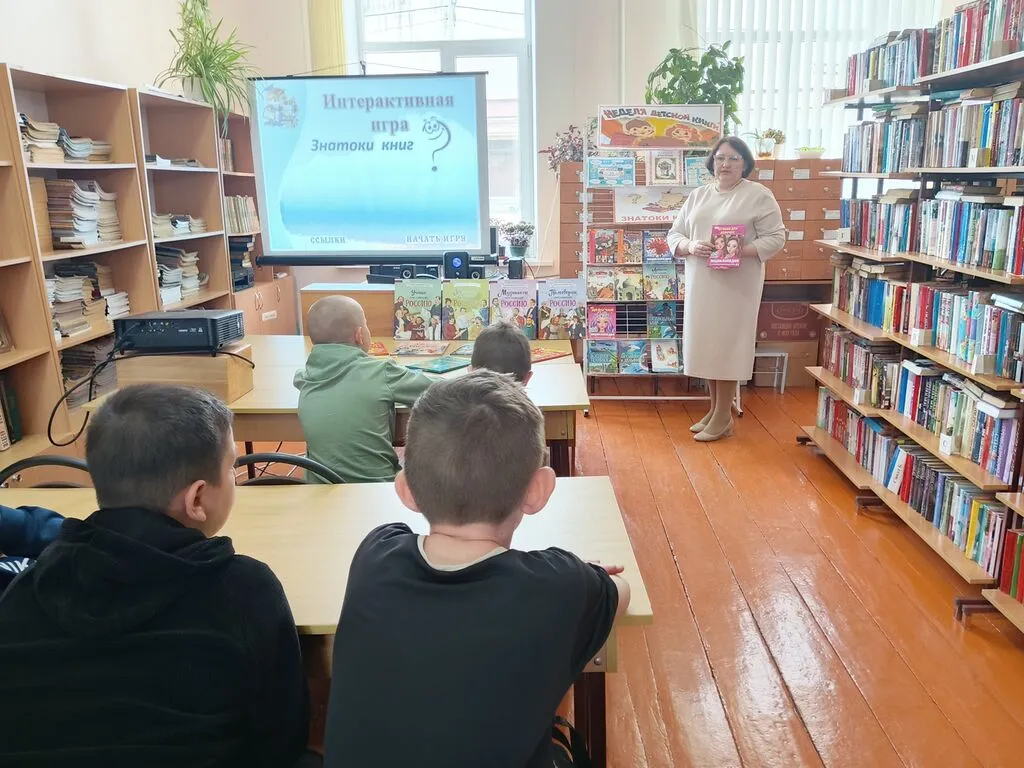 02.04.2026 г. четвероклассники приняли участие в игре-викторине: «Знатоки книг», которая прошла в рамках Всероссийской Недели детской книги. Конкурсы: «Разминка», «Дальше, дальше, дальше», «Угадай сказку», «Названия сказок», «Определи жанр», «Волшебный сундучок», «Вопрос-ответ», «Путешествие», «Не зевай, помогай» позволили выявить самых начитанных и эрудированных участников. Заведующая сектором по работе с детьми Н.А. Мотунова познакомила ребят с богатейшей библиотечной коллекцией энциклопедий для детей, которые помогут расширить кругозор и получить новые знания.