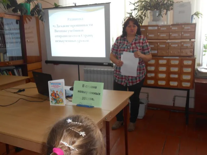 28.03.2016г. в МКУК «Ивановская сельская библиотека» прошла литературная игра: «В Стране невыученных уроков» по одноимённой сказочной повести Лии Гераскиной. Принимали участие в игре учащиеся 2-х классов СОШ № 18. Заведующая сектором по работе с детьми Н.А. Мотунова начала мероприятие рассказом о проведении в России недели детской книги. Затем она познакомила ребят с творческой биографией Лии Гераскиной, рассказала об истории создания книги и мультфильма «В стране невыученных уроков». Ребята с удовольствием просмотрели мультфильм и дружно ответили на вопросы викторины.