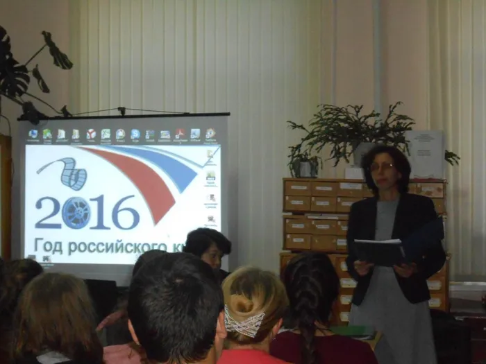 Вечерний киносеанс «Книга в кадре» начался с презентации «Великие люди – любимые лица» об истории кино, этапах кинематографа, об актерах и режиссерах, о связи кино с другими видами искусства: литературой, музыкой. С большим удовольствием гости слушали замечательные песни из популярных кинофильмов в исполнении специалистов Дома культуры станицы. В заключении участники вечера познакомились с историей написания рассказа М. Шолохова «Судьба человека» и посмотрели фильмС. Бондарчука (1959 г.).