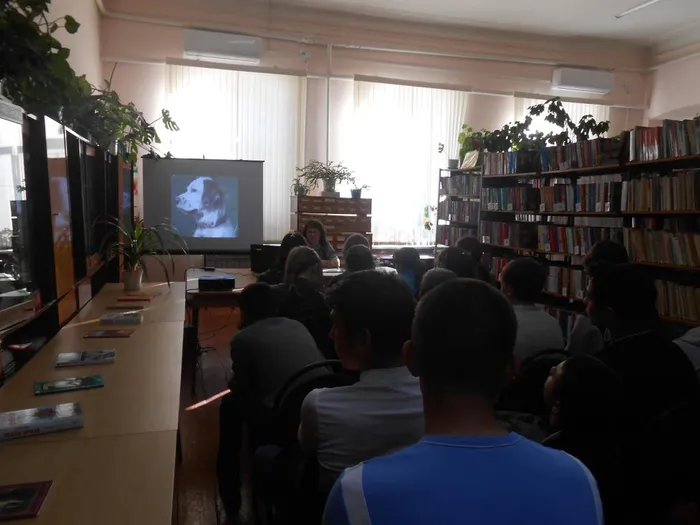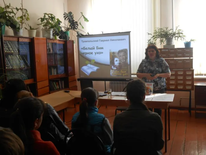 Общероссийская акция «Библионочь – 2016» началась в МКУК «Ивановская сельская библиотека» в 17 часов. Учащиеся 8 классов СОШ № 18 пришли на литературный вечер «Добрые уроки грустной истории» по книге Г. Троепольского «Белый Бим,Черное ухо». Заведующая сектором по работе с детьми Н.А. Мотунова познакомила школьников с творческой биографией автора и историей создания книги и одноимённого фильма. Юноши и девушки не остались равнодушны к судьбе умного и доброго сеттера Бима. Электронная презентация помогла вспомнить друзей и врагов Бима, и просто равнодушных людей. Просмотр буктрейлера к книге никого не оставил равнодушным. Ребята делились своими мыслями друг с другом о книге, фильме, жизни, о людях и их отношении к животным.